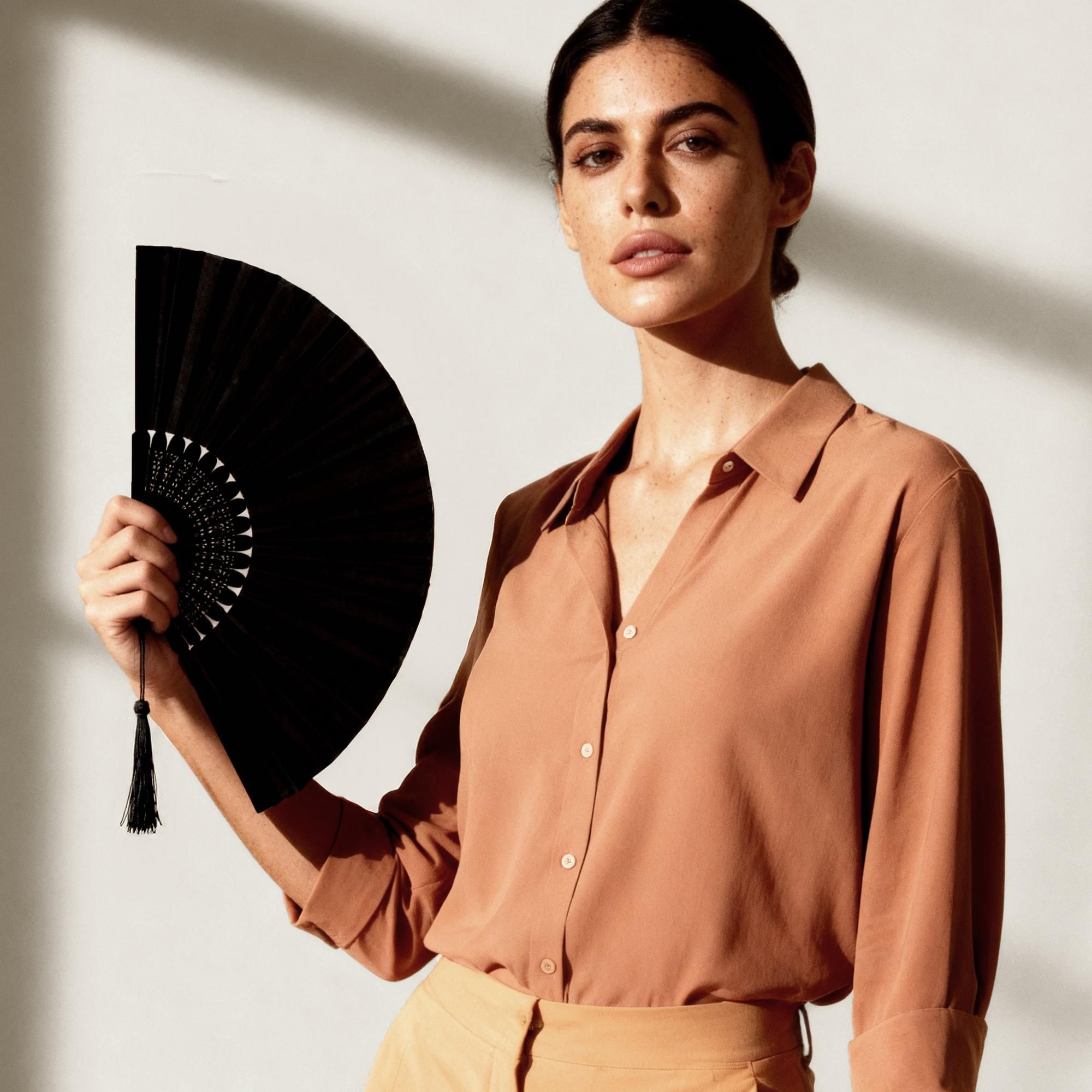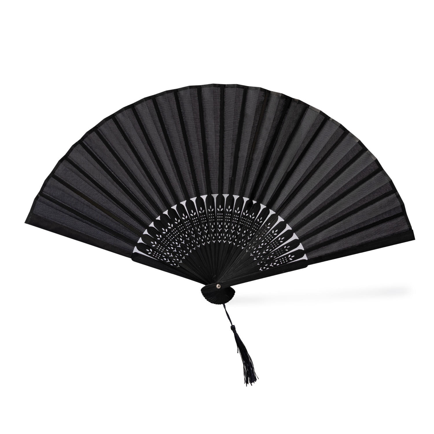 El abanico de bambú y poliéster negro es el accesorio ideal para quienes buscan combinar estilo y funcionalidad en cualquier ocasión. Su diseño en color negro aporta un toque sofisticado, mientras que la estructura de bambú garantiza ligereza y resistencia. Perfecto para eventos formales, celebraciones al aire libre o para refrescarse en el día a día, este abanico es una opción práctica y elegante para quienes valoran los detalles únicos en sus complementos.