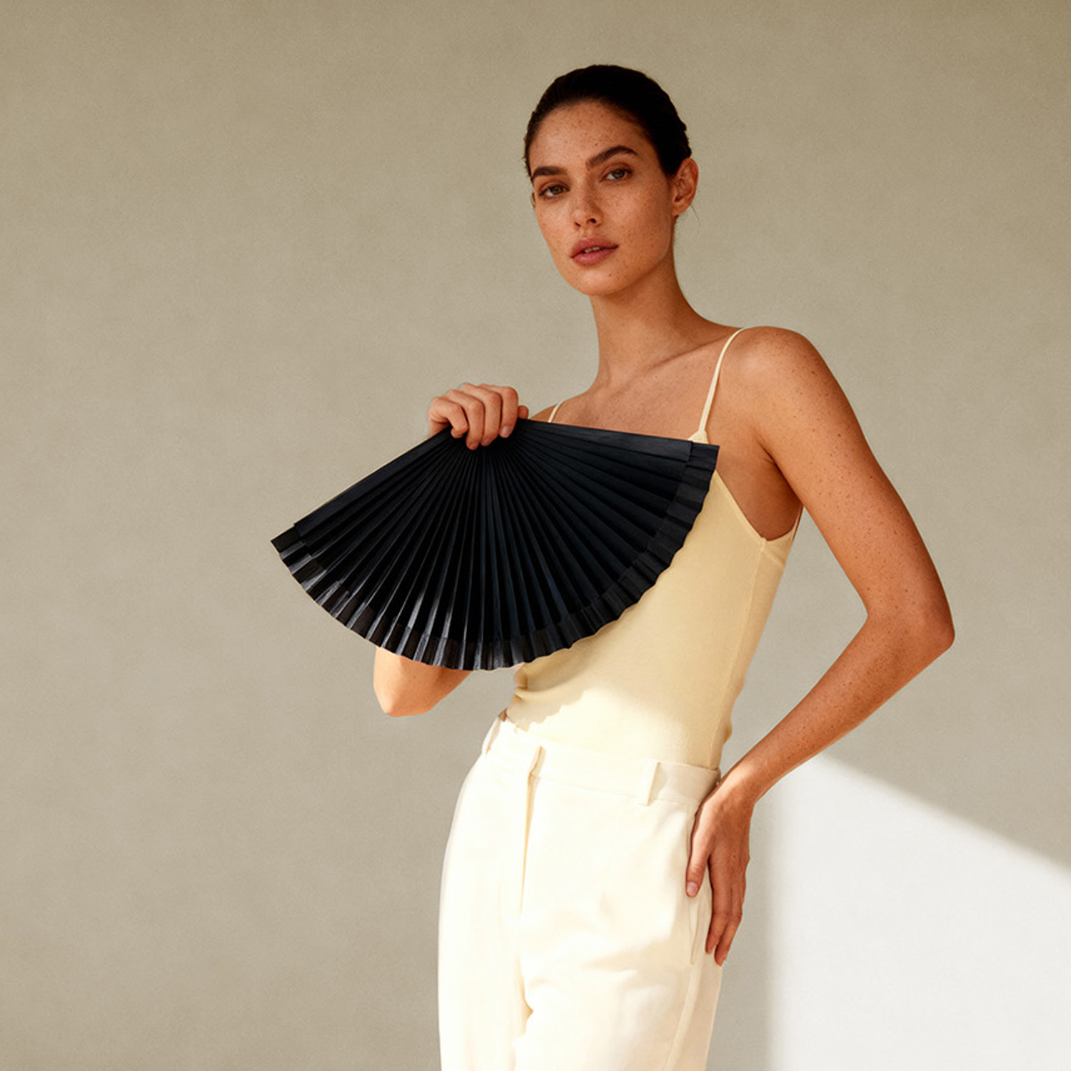 El abanico de madera lacada y poliéster es el complemento perfecto para cualquier ocasión. Su diseño clásico y la calidad de sus materiales lo convierten en un accesorio duradero y a la vez sofisticado. Ideal para llevar en la cartera o bolso, este abanico es un aliado imprescindible para refrescarse con estilo en los días más calurosos.