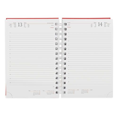 Esta agenda con anillas metalizadas está disponible en varios colores y dos tamaños diferentes, adaptándose a las necesidades de cada usuario. Además, incluye información en múltiples idiomas como español, portugués, francés, inglés, alemán, italiano, euskera, catalán y gallego, lo que la hace ideal para profesionales y estudiantes internacionales. Su mapa político de europa desplegable y secciones para direcciones y teléfonos de interés la convierten en una herramienta completa y versátil.