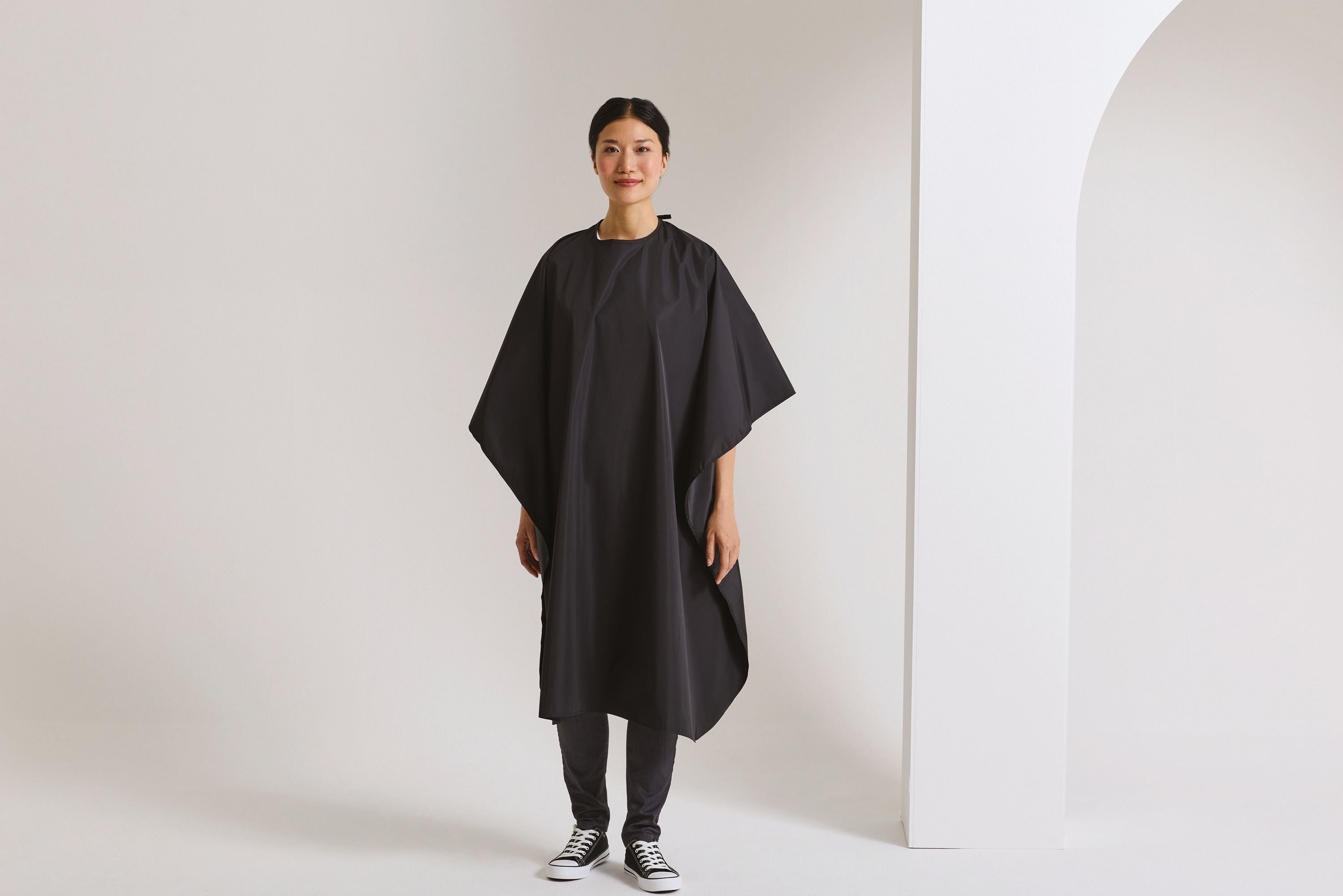 Con unas dimensiones de 117 cm x 160 cm, la bata de peluquería proporciona una cobertura completa, asegurando que el cliente esté completamente protegido durante el corte o tratamiento. Su cierre con tira ajustable permite un ajuste perfecto para cualquier tamaño de cliente. Además, la cinta para colgar facilita su almacenamiento, manteniendo el espacio de trabajo ordenado. Con un peso de solo 458 gramos, es ligera y fácil de manejar, haciendo que el trabajo del estilista sea más cómodo y eficiente.