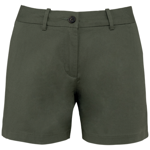Esta bermuda chino mujer cuenta con trabillas para cinturón, una bragueta con botón reciclado y cremallera de metal, y dos bolsillos laterales y traseros con ribete de fantasía. Los dobladillos invisibles y las aberturas en los laterales añaden un toque de sofisticación, mientras que el fondo interior de los bolsillos en forma de espiga y el pespunte interior a contraste en color natural demuestran una atención meticulosa a los detalles. Disponible en una variedad de colores y tamaños, esta bermuda es una opción versátil y elegante para cualquier guardarropa.