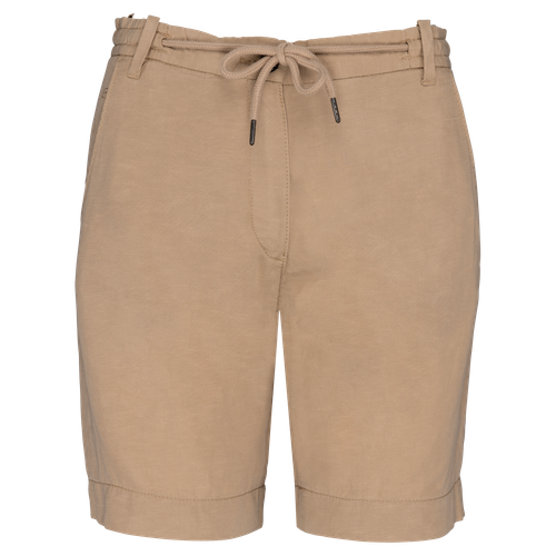 La bermuda ligera mujer no solo destaca por su diseño, sino también por sus detalles prácticos. Cuenta con un bolsillo para monedas y un bolsillo cerillero interior en el lado derecho, así como bolsillos traseros con ribete y pespunte de refuerzo. El botón del bolsillo trasero, de plástico imitación madera, añade un toque de sofisticación. Disponible en colores azul y beige, y en tallas que van desde la 34 fr hasta la 48 fr, esta bermuda se adapta a todas las necesidades y estilos.
