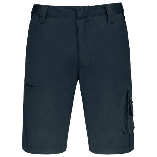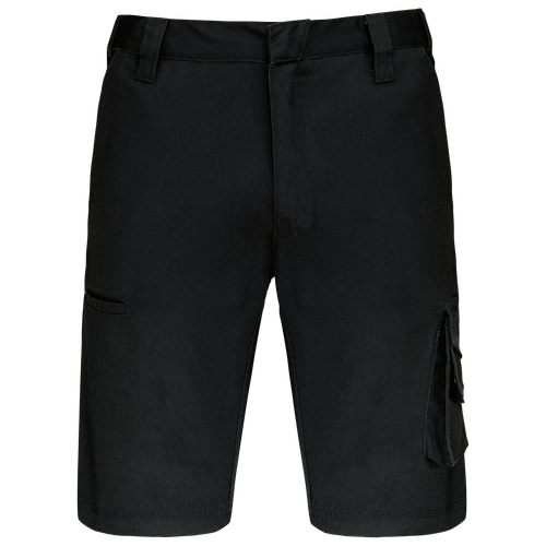 Esta bermuda de trabajo multibolsillos no solo es funcional, sino también estilosa. Cuenta con múltiples bolsillos, incluyendo tres delanteros, traseros y un bolsillo lateral con botones a presión ocultos, ideales para llevar herramientas y objetos personales. Disponible en colores negro, gris y azul, y en una amplia gama de tamaños, esta bermuda se adapta a todas las necesidades y preferencias.