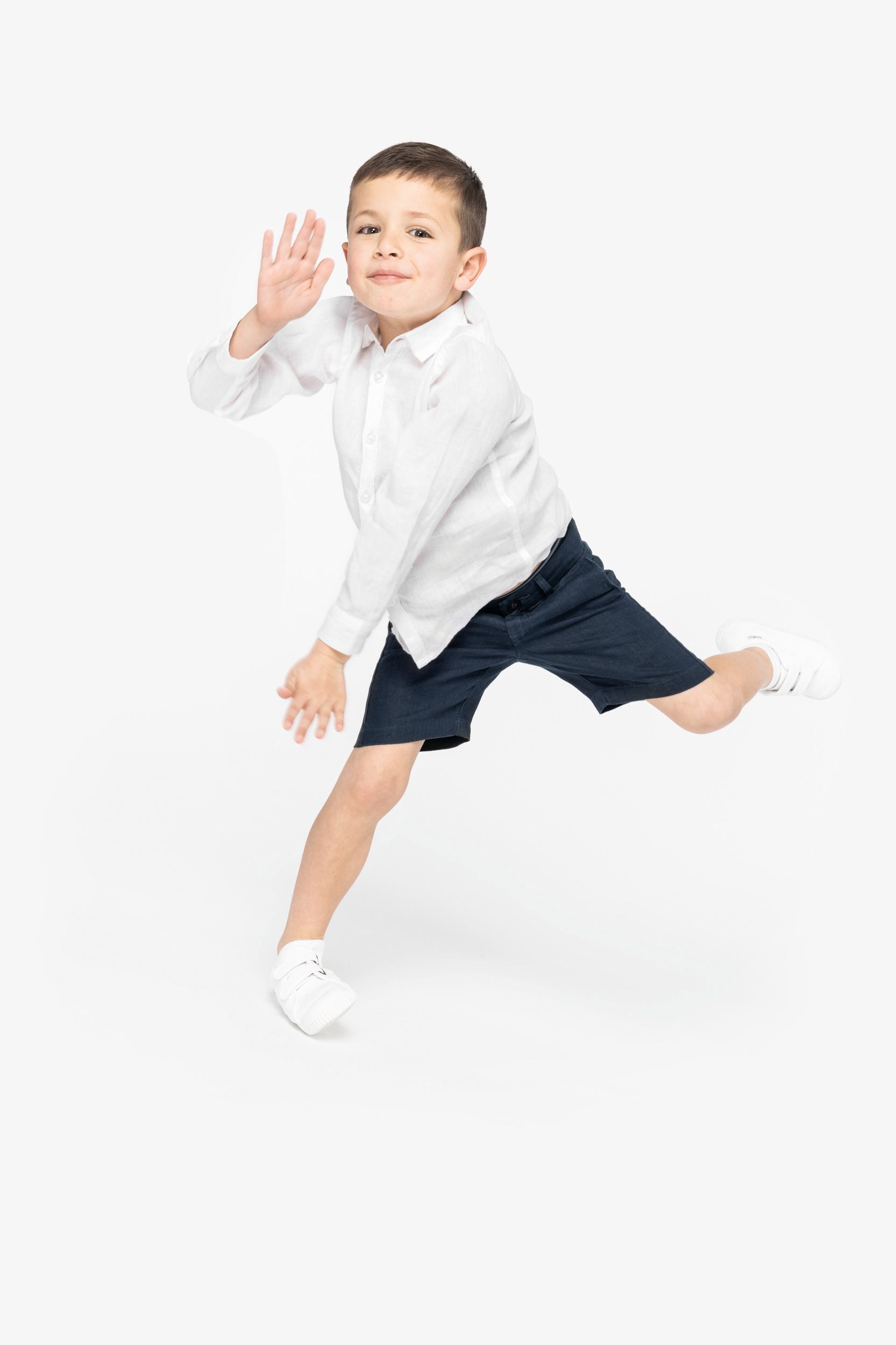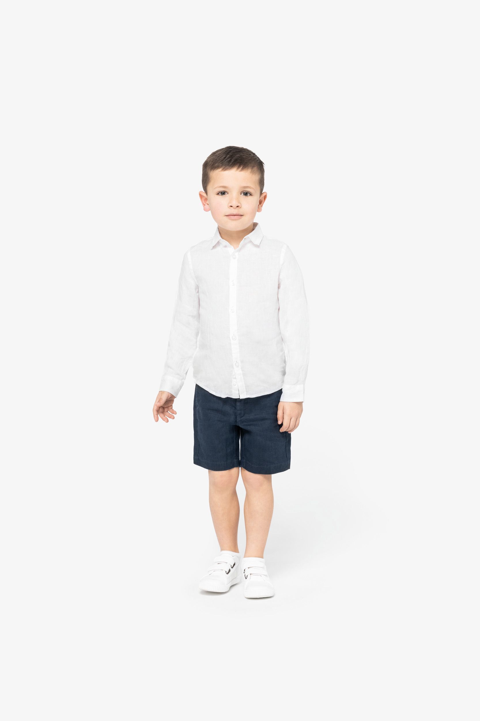 Esta bermuda para niño de lino destaca por su compromiso con el medio ambiente, incorporando botones y cremallera de materiales reciclados. Sus bolsillos delanteros y traseros, reforzados con costuras resistentes y detalles de espiga, ofrecen funcionalidad y estilo. El bajo con dobladillo de pespunte simple y el lavado posterior a la confección aseguran un acabado único en cada prenda. Disponible en colores versátiles como linen sand y navy blue, y en tallas de 4 a 12 años, es una opción económica y duradera para padres que buscan calidad y diseño en ropa infantil.
