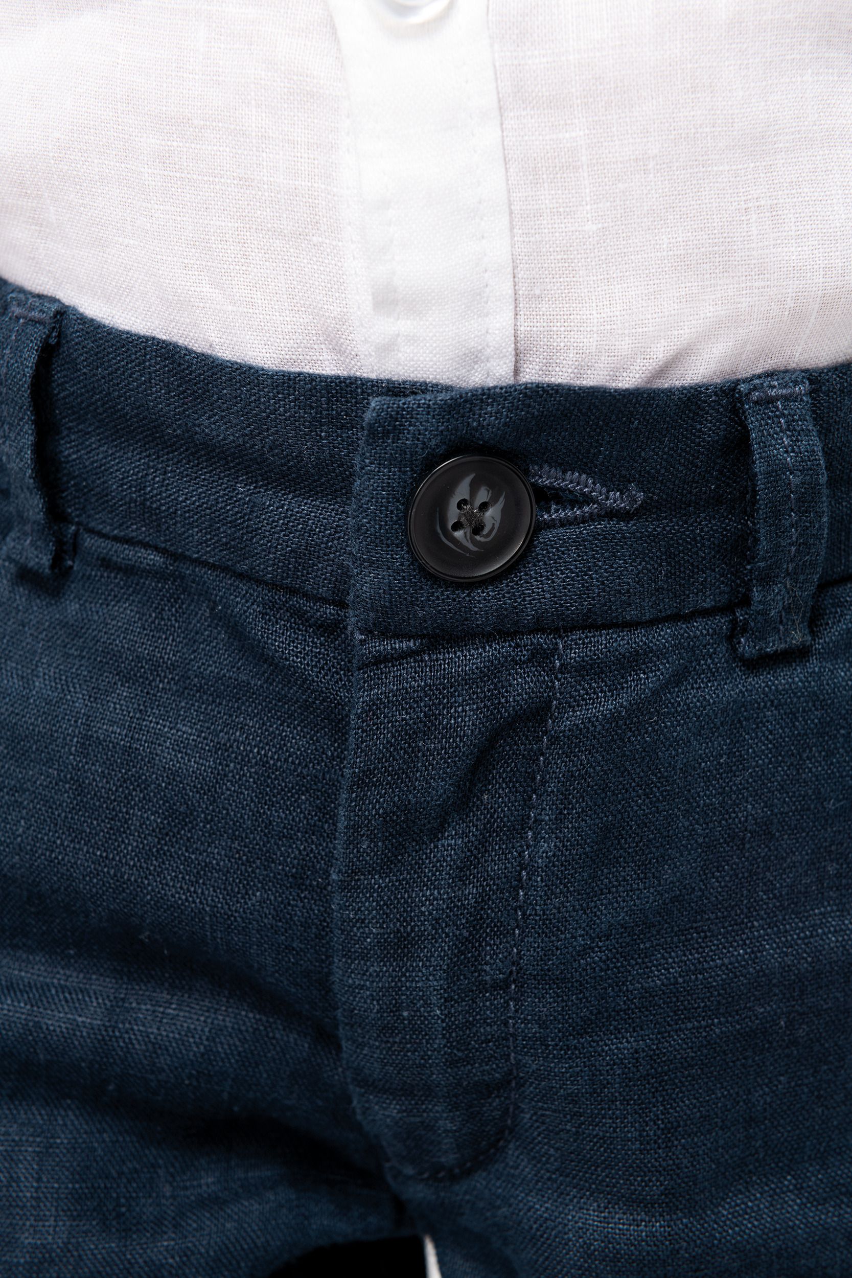 La bermuda para niño de lino es la prenda perfecta para quienes buscan comodidad y frescura en los días más cálidos. Su confección en 100% lino garantiza transpirabilidad y ligereza, mientras que la cintura ajustable con trabillas e interior elástico permite un ajuste personalizado que acompaña el crecimiento del niño. El acabado interior de la cintura en algodón con rayas azul marino añade un toque de distinción y suavidad al contacto con la piel, haciendo de esta bermuda una opción ideal tanto para ocasiones informales como para eventos especiales.