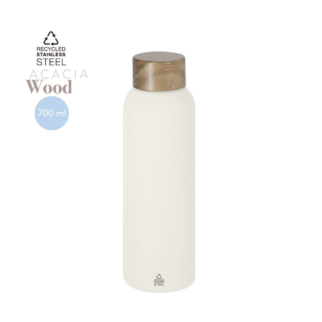 El bidón 700ml de acero reciclado y acabado gomoso es la opción perfecta para quienes buscan una botella reutilizable, resistente y con estilo. Su cuerpo de acero inoxidable reciclado garantiza durabilidad y una vida útil prolongada, mientras que el acabado gomoso proporciona un agarre cómodo y seguro en cualquier situación. Gracias a su capacidad de 700 ml, es ideal para acompañar en el día a día, ya sea en la oficina, el gimnasio o actividades al aire libre. El tapón de madera de acacia con cierre a rosca asegura un sellado hermético, evitando derrames y manteniendo la frescura de las bebidas.