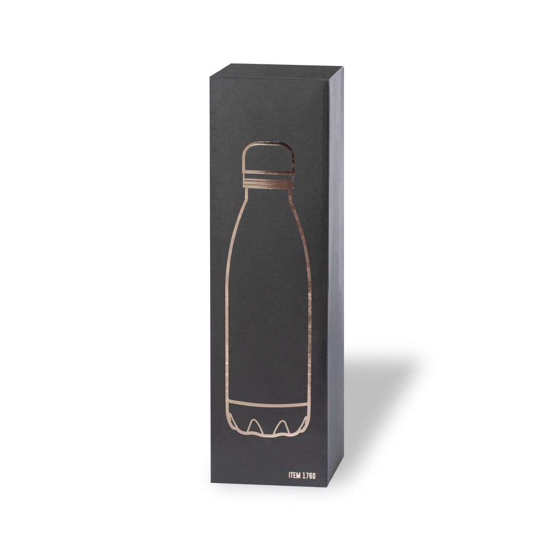 El tapón a rosca asegura que no habrá derrames ni accidentes, manteniendo tu bebida segura. Además, al ser libre de BPA, tu salud está en primer lugar, evitando cualquier tipo de contaminante en tu hidratación diaria. Su peso ligero de 170 gr y dimensiones óptimas lo hacen fácil de transportar, sin sacrificar capacidad ni estilo. Presentado en una caja individual negra de diseño elegante, es el regalo perfecto para aquellos que valoran la funcionalidad y la estética.
