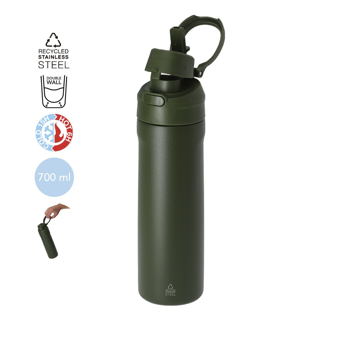 El bidón térmico 700ml de acero reciclado es la opción ideal para quienes buscan una solución práctica y ecológica para mantenerse hidratados. Gracias a su doble pared, mantiene la temperatura de las bebidas durante horas, ya sean frías o calientes. Su acero inoxidable reciclado garantiza durabilidad y resistencia, convirtiéndolo en un accesorio imprescindible para el día a día. El diseño incluye una asa de transporte integrada, facilitando su uso en el gimnasio, la oficina o durante actividades al aire libre.