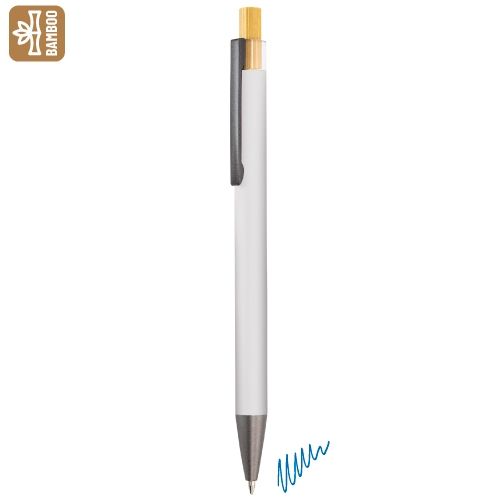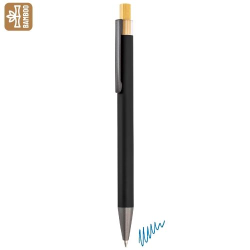 Gracias a su ligereza de tan solo 14 gramos y su tamaño compacto de 14 cm, el bolígrafo aluminio mate con pulsador de bambú es fácil de transportar y cómodo de usar durante largas jornadas de escritura. Su tinta azul garantiza una escritura suave y precisa, ideal para tomar apuntes, firmar documentos o regalar como detalle corporativo. Perfecto para quienes buscan un producto económico sin renunciar a la calidad y el respeto por el medio ambiente, este bolígrafo es la elección acertada para cualquier ocasión.