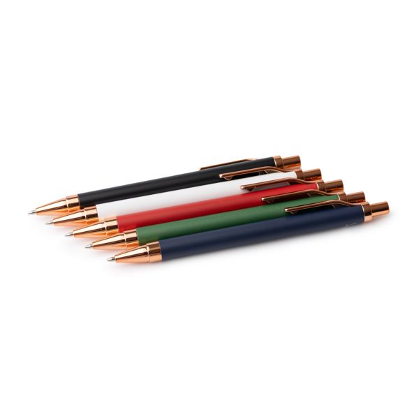 El bolígrafo aluminio reciclado mate detalles cobre es la elección perfecta para quienes valoran el diseño y el respeto por el medio ambiente. Su estructura de aluminio reciclado garantiza resistencia y ligereza, mientras que el acabado mate y los detalles en cobre aportan un estilo sofisticado. Disponible en una amplia gama de colores como blanco, negro, verde helecho, marino y rojo, este bolígrafo se adapta a cualquier personalidad o entorno profesional. Su tamaño compacto de 14 cm lo convierte en el compañero ideal para llevar siempre a mano, ya sea en la oficina, la universidad o durante reuniones importantes.