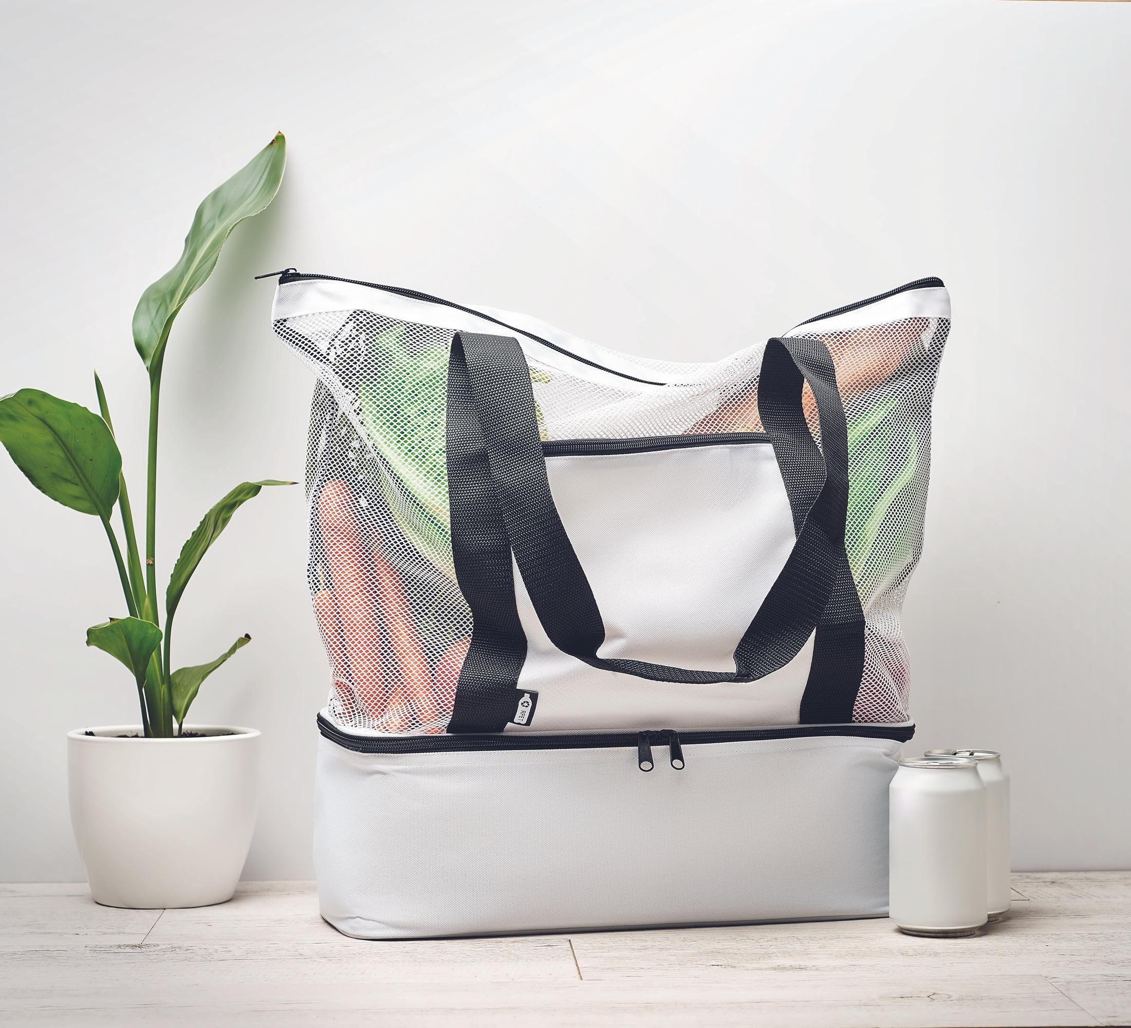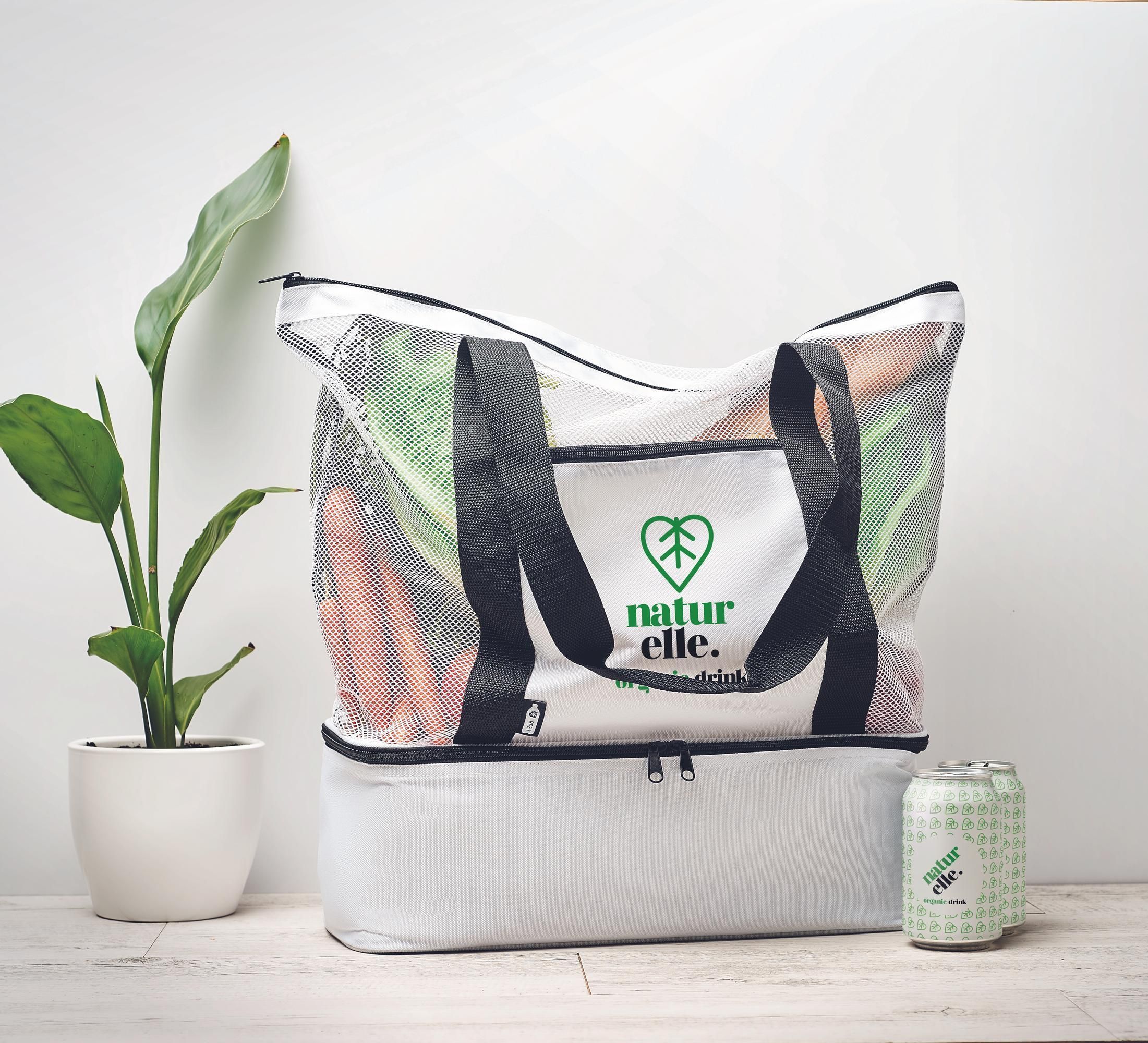 La bolsa 600d rpet playa con nevera es el complemento perfecto para disfrutar de un día en la playa o para realizar tus compras con un toque de conciencia ambiental. Fabricada con materiales reciclados, esta bolsa no solo es resistente y duradera, sino que también contribuye a la protección del medio ambiente. Su diseño elegante en colores black y white la convierte en un accesorio versátil que combina con cualquier atuendo, mientras que su amplio espacio interior asegura que puedas llevar todo lo necesario para tu jornada al aire libre.