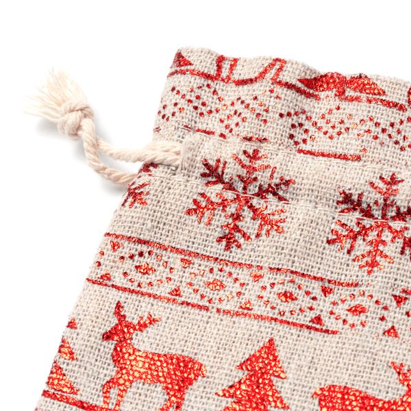 Gracias a su tamaño compacto de 14 x 10 cm, la bolsa de regalo navideña es perfecta para pequeños presentes, joyas, dulces o accesorios. Su cara lisa es especial para impresión, permitiendo personalizarla con mensajes, logotipos o nombres, lo que la convierte en una excelente opción para empresas y comercios que buscan destacar su marca en navidad. Además, al ser reutilizable, contribuye a reducir el uso de envoltorios desechables, ofreciendo una alternativa económica y ecológica para quienes valoran el cuidado del medio ambiente sin renunciar a la elegancia en la presentación de sus regalos.