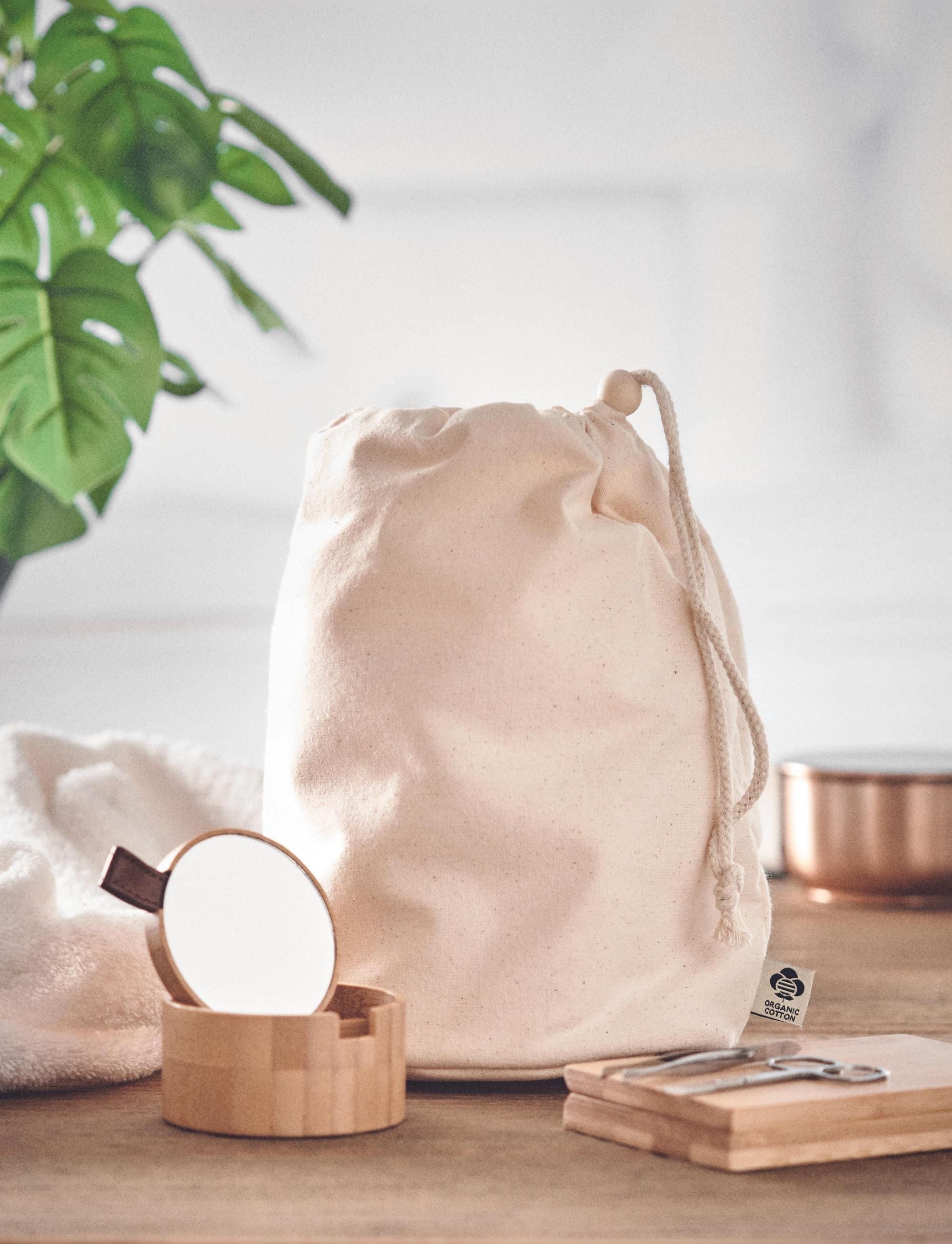 Ya sea para llevar tus artículos de belleza, material de oficina o accesorios de viaje, la bolsa saco algodón se adapta a tus necesidades. Su color beige y diseño atemporal la hacen ideal para cualquier género y edad, convirtiéndola en un regalo excepcional o en una adquisición imprescindible para tu colección de accesorios sostenibles. Su ligereza y resistencia garantizan una larga vida útil, acompañándote en cada paso con estilo y conciencia ambiental.