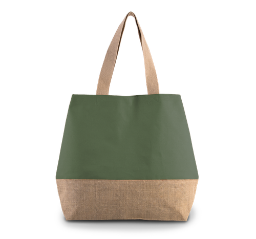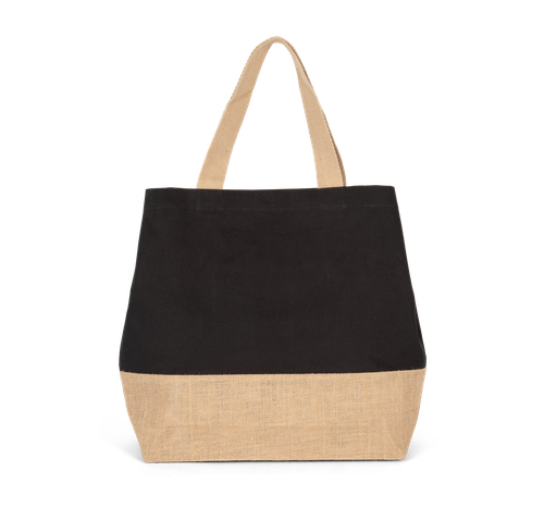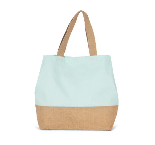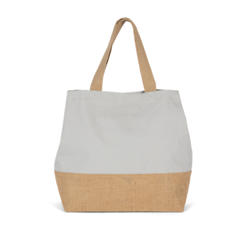La bolsa shopper con cierre de presión cuenta con un bolsillo interior con cremallera, ideal para guardar objetos pequeños y mantenerlos seguros. Sus asas de algodón de 55 cm proporcionan un agarre cómodo, permitiendo llevarla al hombro sin esfuerzo. El cierre con botones de presión asegura que tus pertenencias estén siempre protegidas. Además, el bajo laminado contrastado de yute natural añade un toque de sofisticación y refuerza la estructura de la bolsa, haciéndola aún más resistente.