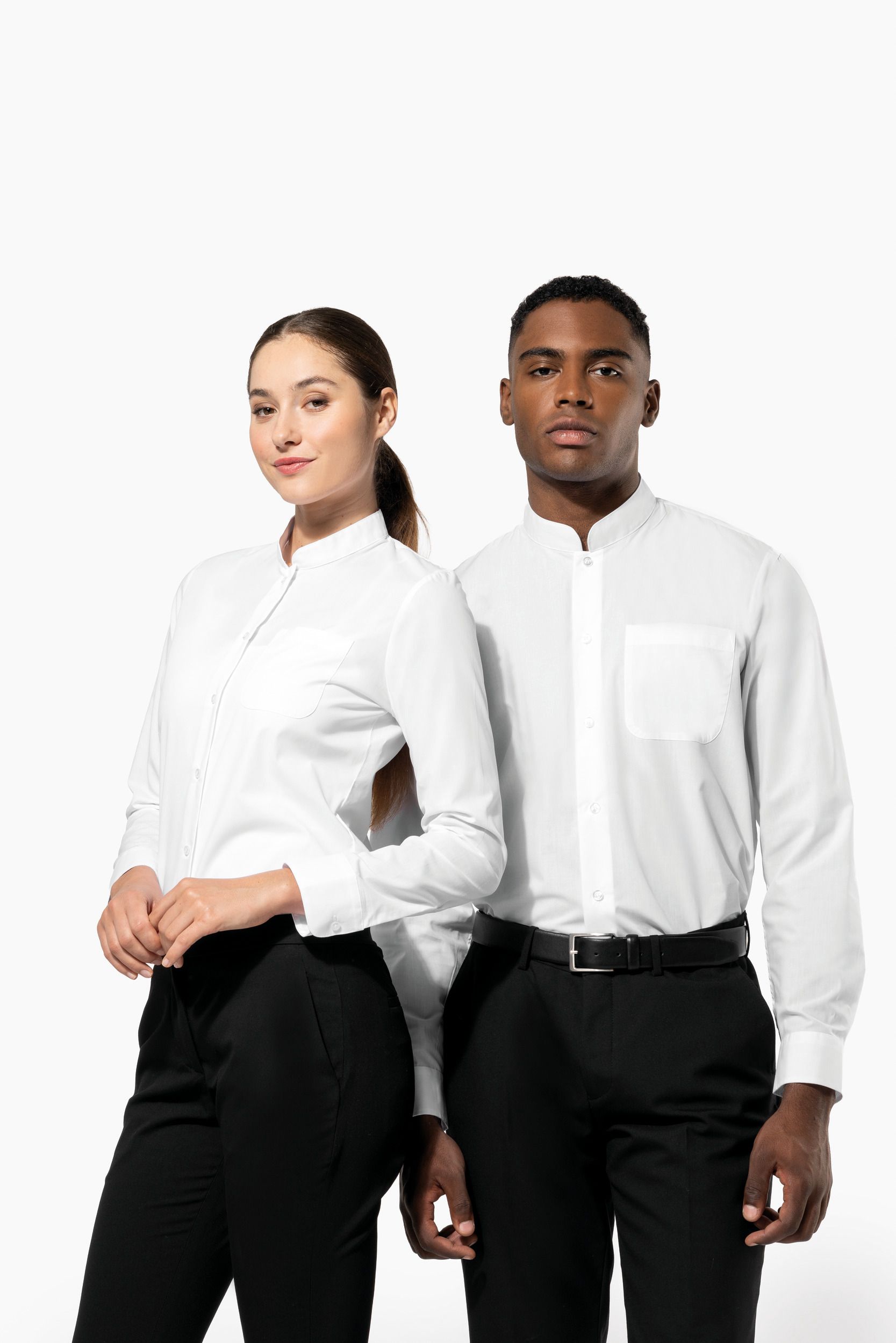 La camisa cuello mao hombre es la elección perfecta para quienes buscan un estilo sofisticado y moderno. Confeccionada con un tejido de 65% poliéster y 35% algodón, esta camisa ofrece una combinación ideal de durabilidad y confort. El diseño de cuello mao añade un toque distintivo y elegante, mientras que los botones a tono y el bolsillo redondeado en el pecho izquierdo aportan funcionalidad y estilo.
