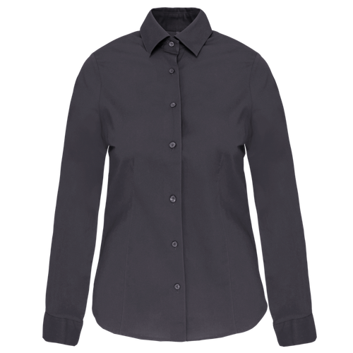 Esta camisa entallada manga larga mujer cuenta con un cuello suave y botones tono sobre tono que añaden un toque de sofisticación. Las pinzas en la parte delantera y trasera aseguran un ajuste perfecto, mientras que los puños ajustables y resistentes al rasgado garantizan durabilidad. Los acabados con doble pespunte y el dobladillo con forma redonda completan esta prenda, haciéndola ideal tanto para el trabajo como para eventos casuales.