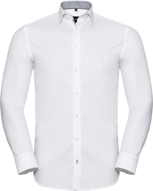 La camisa espiga manga larga ajustada es la elección perfecta para quienes buscan una prenda que combine estilo y comodidad. Confeccionada con un 86% de algodón y un 14% de poliéster, esta camisa ofrece una sensación suave al tacto y una durabilidad excepcional. Los elementos contrastados en el interior de los puños y el cuello, junto con la tapeta interior con borde contrastado, añaden un toque de sofisticación que no pasará desapercibido.