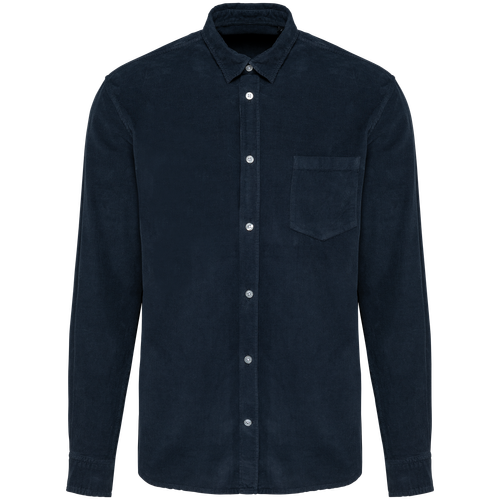 El diseño de esta camisa de pana hombre incluye un corte entallado que realza la figura, un bolsillo en el pecho con esquinas reforzadas y botones de efecto perla que añaden un toque de sofisticación. Los puños ajustables con dos botones redondeados permiten un ajuste personalizado, mientras que el canesú forrado en la parte superior de la espalda y el dobladillo inferior redondeado aseguran un acabado impecable. Además, la prenda ha sido teñida después del montaje, lo que puede resultar en ligeras variaciones de color, haciendo que cada camisa sea única.