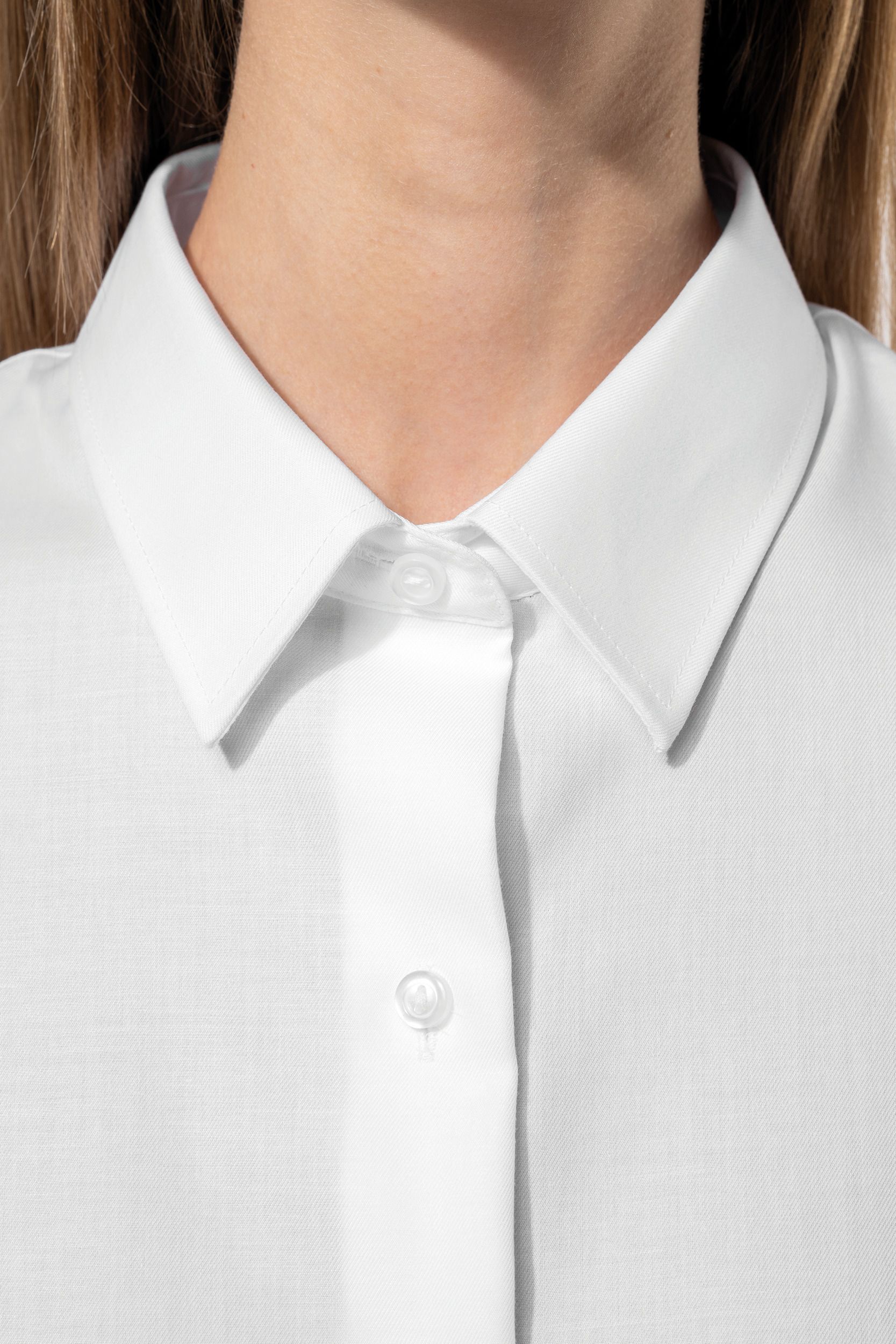 Gracias a su tecnología avanzada, esta camisa no necesita planchado, lo que la convierte en una opción ideal para mujeres ocupadas que desean mantener un aspecto impecable sin esfuerzo. El acabado con costuras vueltas y el dobladillo con forma redonda no solo mejoran su durabilidad, sino que también aportan un toque moderno y sofisticado. Además, incluye un botón adicional para mayor seguridad y conveniencia. Con un peso ligero de 316 gramos, esta camisa es fácil de llevar y perfecta para cualquier ocasión, desde reuniones de trabajo hasta salidas casuales.