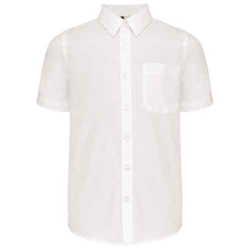Con un cuello cut-away y botones a tono, la camisa popelina manga corta infantil ofrece un diseño elegante y moderno. El bolsillo en el lado izquierdo del pecho añade un toque práctico y estilizado. Además, el canesú doble en la espalda y el acabado con costuras dobladas aseguran una mayor durabilidad y resistencia. El bajo de la prenda redondeado proporciona un ajuste perfecto, mientras que el botón adicional es un detalle que siempre viene bien. Disponible en tallas desde 6/8 hasta 12/14 años, esta camisa es ideal para niños de todas las edades.