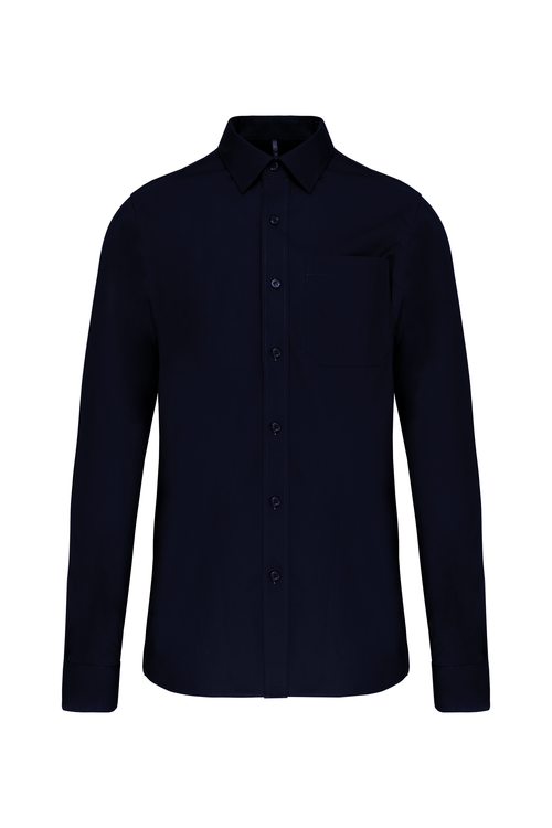 La camisa popelina manga larga hombre está confeccionada con 100% algodón, garantizando una suavidad y comodidad inigualables. Su tejido de fácil cuidado, gracias al tratamiento easy care, permite mantener la camisa impecable con poco esfuerzo. El cuello cut-away y los botones tono sobre tono añaden un toque de sofisticación, mientras que el bolsillo en el pecho izquierdo proporciona funcionalidad.