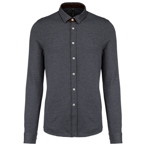 La camisa punto jacquard manga larga es la elección perfecta para quienes buscan un equilibrio entre estilo y confort. Confeccionada con un 68% de algodón y un 32% de poliéster, esta prenda ofrece una textura suave y agradable al tacto. El diseño de punto jacquard añade un toque de sofisticación, mientras que la base del cuello en ante contrastado aporta un detalle distintivo que no pasa desapercibido.