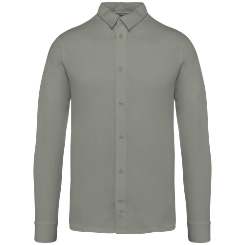 La camisa punto jersey algodón destaca por sus detalles cuidadosamente diseñados. El cuello en el material principal con pie de cuello y la plaqueta de botonadura delantera con botones reciclados a tono con efecto nacarado, añaden un toque de sofisticación. Los puños con botones y las costuras laterales con pespunte sencillo garantizan durabilidad y resistencia. Además, el dobladillo con doble pespunte y el bajo redondeado proporcionan un acabado impecable, haciendo de esta camisa una opción versátil para cualquier ocasión.