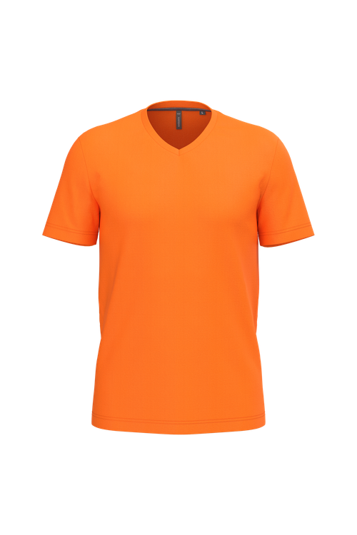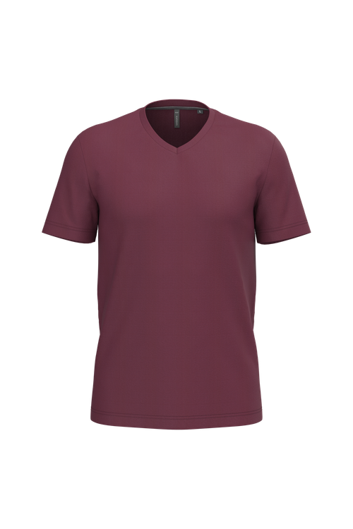 Con una forma entallada que realza la figura, la camiseta de algodón con cuello de pico es ideal tanto para el uso diario como para eventos casuales. La tira cubrecosturas en el cuello y el acabado con doble pespunte en el bajo de las mangas y de la prenda aseguran una durabilidad excepcional. Disponible en tallas desde s hasta 4xl, esta camiseta se ajusta a todas las necesidades y preferencias.