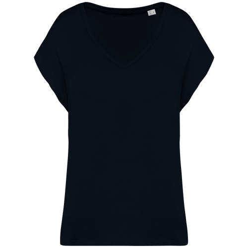 La camiseta algodón orgánico mujer holgada es la elección perfecta para quienes buscan una prenda cómoda y con estilo. Confeccionada con 100% algodón orgánico, esta camiseta ofrece una suavidad incomparable y es amigable con el medio ambiente. Su corte oversize y el cuello de pico proporcionan un ajuste relajado y moderno, ideal para cualquier ocasión. Las mangas tipo kimono y las costuras laterales aseguran una caída perfecta y un look desenfadado.