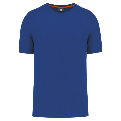 El diseño de la camiseta cuello redondo eco incluye un corte recto y un cuello redondo de canalé 1x1, lo que garantiza un ajuste cómodo y moderno. La tira cubrecosturas de espiga naranja en el cuello, que se extiende hasta la espalda y los hombros (excepto en el color blanco), añade un toque distintivo. Además, las costuras reforzadas en los hombros y la etiqueta de marca extraíble facilitan la personalización, haciendo de esta camiseta una opción duradera y versátil para cualquier ocasión.