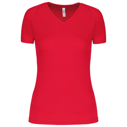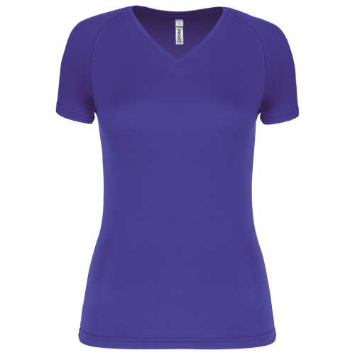 La camiseta de deporte mujer cuello de pico está diseñada para ofrecer la máxima comodidad durante cualquier actividad física. Fabricada con 100% poliéster, garantiza un tejido de secado rápido que mantiene la piel seca y fresca en todo momento. Su cuello de pico con tira cubrecosturas y la manga raglán con pespunte especial proporcionan un ajuste perfecto y una gran libertad de movimiento.