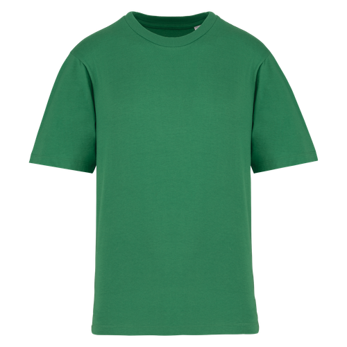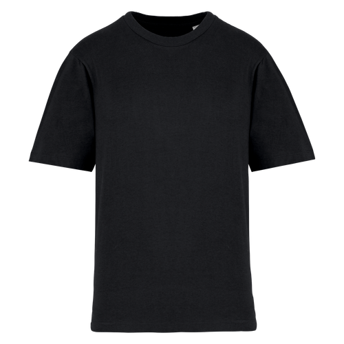 El corte regular con mangas caídas ofrece un ajuste cómodo y moderno, mientras que el lavado con enzimas asegura que la camiseta mantenga su frescura y suavidad tras cada lavado. El canalé 2 x 1 en el cuello y la tira cubrecosturas a tono en el interior del cuello de punto jersey añaden detalles de calidad que mejoran la durabilidad de la prenda. Además, el doble pespunte en el bajo de las mangas y de la prenda proporciona un acabado limpio y resistente. Disponible en tallas desde 4/6 años hasta 12/14 años, esta camiseta es perfecta para niños de todas las edades.