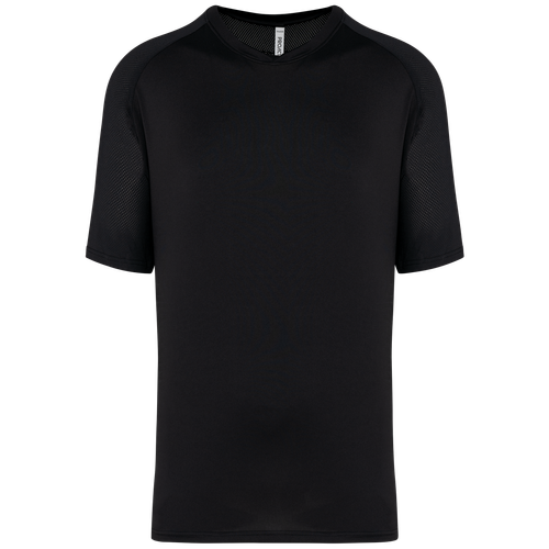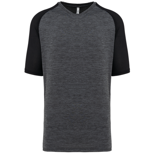La camiseta pádel bicolor hombre cuenta con un cuello redondo de punto jersey con inserto a tono en la parte delantera, proporcionando un ajuste cómodo y seguro. La tira de cubrecosturas en el cuello añade un extra de confort, evitando rozaduras. Los acabados de doble pespunte en el bajo de las mangas y de la prenda aseguran una mayor resistencia al desgaste. Disponible en varios colores y tamaños, esta camiseta es perfecta para cualquier jugador de pádel que busque combinar rendimiento y estilo en la pista.