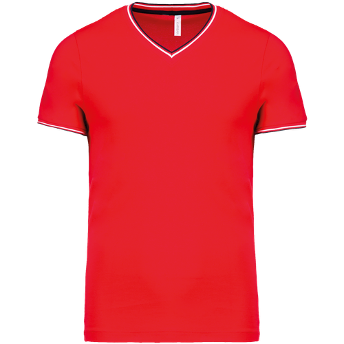 Esta camiseta cuenta con acabados de canalé con rayas contrastadas en el cuello y bajo de mangas, lo que le da un toque distintivo y moderno. La tira cubrecosturas en el cuello y las aberturas laterales contrastadas añaden un extra de durabilidad y estilo. Además, el acabado con doble pespunte en el bajo de la prenda asegura una mayor resistencia y longevidad, convirtiéndola en una opción económica y duradera para cualquier guardarropa.