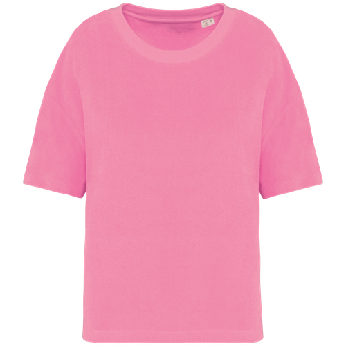 La camiseta de rizo para mujer corte oversize es la elección perfecta para quienes buscan una prenda que combine comodidad y estilo. Confeccionada con un 80% de algodón orgánico y un 20% de poliéster reciclado postconsumo, esta camiseta no solo es suave al tacto, sino también respetuosa con el medio ambiente. Su corte oversize y el material tipo rizo ofrecen una sensación de confort inigualable, ideal para cualquier ocasión.