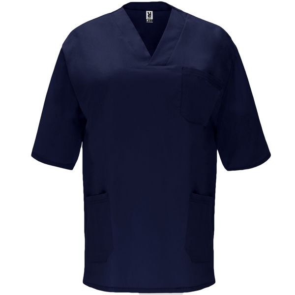 La funcionalidad se encuentra en el corazón de esta camiseta de servicios. Cuenta con un escote de pico cruzado que aporta un toque de elegancia y facilita el movimiento. Los tres bolsillos, uno en el pecho y dos laterales, son ideales para tener a mano herramientas y objetos personales. Además, las aperturas laterales brindan mayor libertad de movimiento, haciendo de esta camiseta una opción versátil para profesionales de diversos sectores.