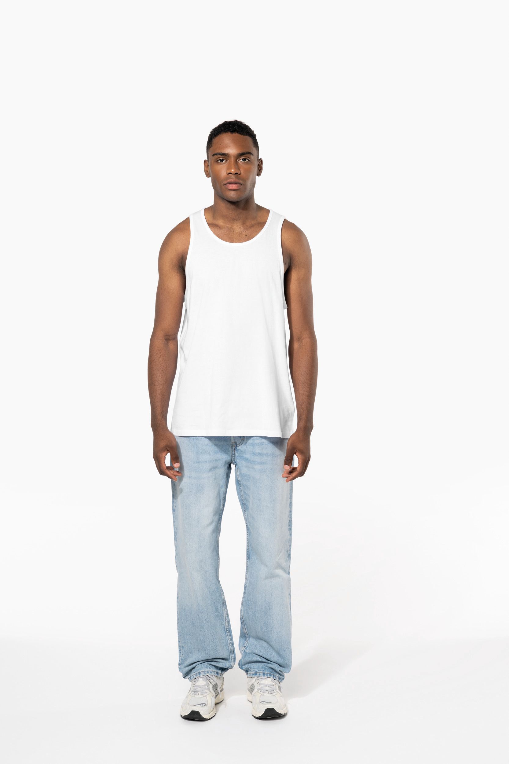 El diseño de esta camiseta de tirantes eco hombre incluye un corte ajustado y un escote redondo, lo que la hace ideal para cualquier ocasión, desde una salida casual hasta una sesión de entrenamiento. La unión a tono del material principal en el escote y la sisa, junto con el doble pespunte en la parte inferior, aseguran una durabilidad excepcional. Además, la ausencia de etiqueta en el cuello facilita la personalización, convirtiéndola en una opción versátil y práctica.