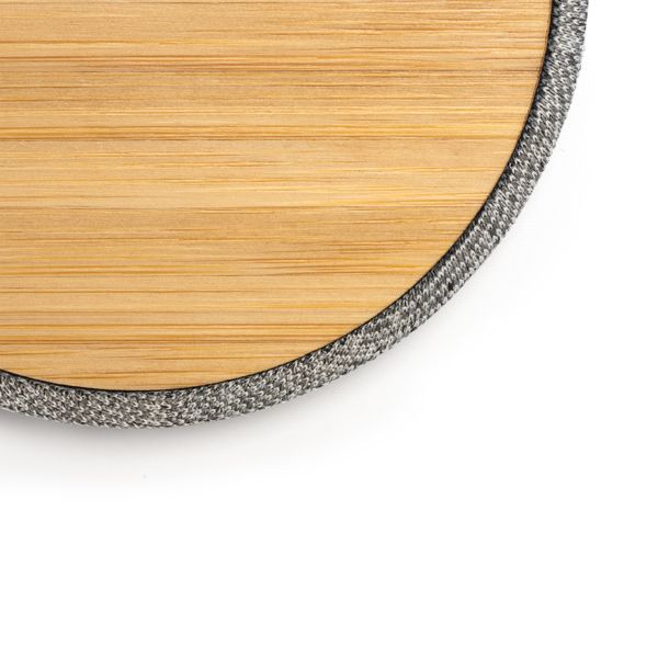 El cargador inalámbrico 10w con bambú combina la última tecnología de carga rápida con un diseño sostenible y moderno. Su superficie de bambú natural y cuerpo en tejido rpet lo convierten en una opción ideal para quienes buscan funcionalidad sin renunciar al estilo ni al respeto por el medio ambiente. Compatible con cualquier dispositivo que soporte carga inalámbrica, este accesorio es perfecto para el hogar, la oficina o como regalo para amantes de la tecnología y la sostenibilidad.