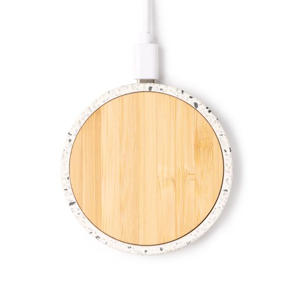 El cargador inalámbrico de bambú y terrazo destaca por su combinación de materiales sostenibles y tecnología de carga rápida de 10w. Su base de bambú natural y cuerpo de piedra de terrazo reciclado lo convierten en una opción ideal para quienes buscan un accesorio respetuoso con el medio ambiente sin renunciar a la eficiencia. Compatible con dispositivos que admiten carga inalámbrica, este cargador es perfecto para el hogar, la oficina o como regalo para amantes de la tecnología y el diseño ecológico.