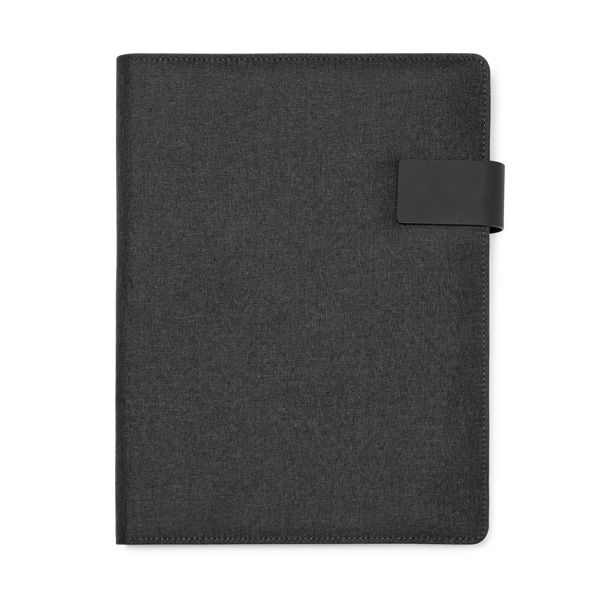 La carpeta a4 con bloc extraíble es la elección ideal para quienes buscan orden y funcionalidad en su día a día. Fabricada en resistente rpet 600d vigoré, esta carpeta destaca por su diseño moderno y ecológico, disponible en negro, denim vigoré y gris vigoré. Su cierre magnético garantiza la seguridad de los documentos, mientras que el bloc extraíble de 30 hojas a una raya facilita la toma de notas en cualquier momento. Perfecta para profesionales, estudiantes y quienes valoran la organización eficiente en reuniones, clases o viajes de trabajo.