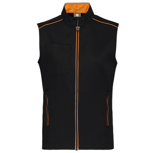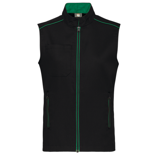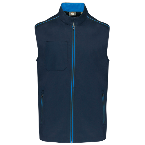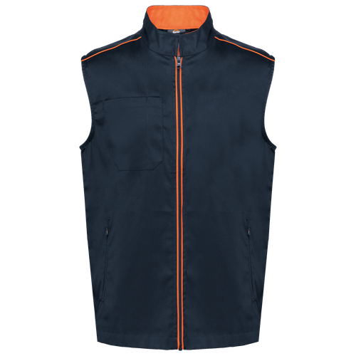 El chaleco hombre con bolsillos es la prenda ideal para quienes buscan combinar funcionalidad y estilo en su dÃa a dÃa. Confeccionado con un 65% de poliéster y un 35% de algodón, este chaleco ofrece una durabilidad y comodidad excepcionales. Su diseño incluye dos bolsillos con cremallera a los lados y un bolsillo abierto en el pecho con portabolÃgrafo, lo que lo hace perfecto para llevar objetos esenciales de manera segura y organizada. Además, cuenta con un cierre de cremallera en la parte delantera y detalles contrastados en los hombros y el interior del cuello, añadiendo un toque de elegancia.