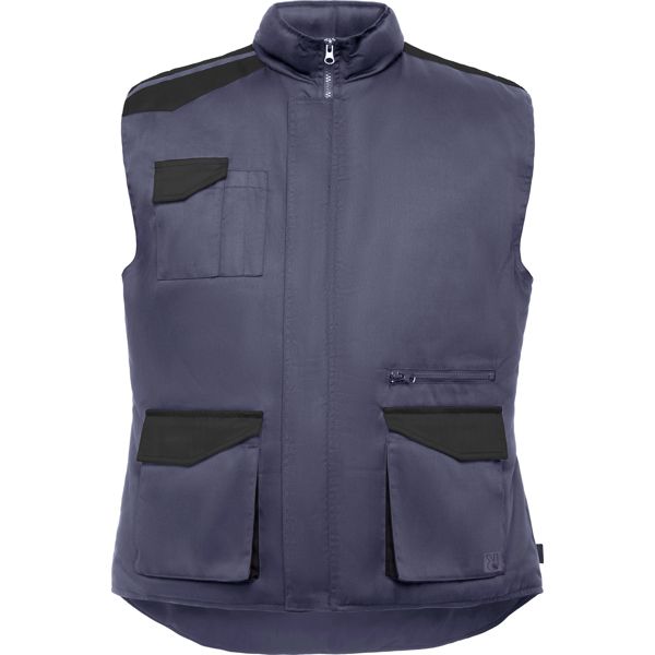 Este chaleco trabajo multibolsillos cuenta con una cremallera central con velcro, piezas de hombros y detalles a contraste, y cortavientos en bocamangas para mayor protección. Sus múltiples bolsillos, incluyendo un bolsillo exterior para móvil, dos bolsillos frontales con fuelle, y un bolsillo interior con velcro, permiten llevar todo lo necesario de manera organizada. Además, el ajustador con cierre automático y el bajo posterior con faldón garantizan un ajuste perfecto y mayor comodidad durante todo el día.