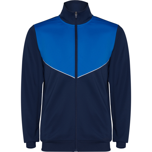 Este chándal ligero y elástico cuenta con una chaqueta que presenta un diseño a contraste en el pecho y un cuello alto con cubrecosturas a contraste, añadiendo un toque moderno y sofisticado. La cremallera central y los bolsillos laterales proporcionan funcionalidad, mientras que los puños y la cintura en canalé 2x2 aseguran un ajuste perfecto. El pantalón, con cintura elástica y cordón de ajuste, incluye una pieza lateral a contraste con vivo y un bajo con cremallera, ofreciendo un ajuste personalizado y mayor comodidad.