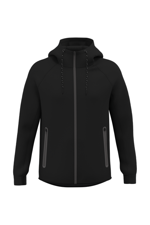 La chaqueta de chándal con capucha mujer es la elección perfecta para quienes buscan una combinación de confort y moda. Confeccionada con un 94% de poliéster y un 6% de elastano, esta chaqueta ofrece una sensación suave y elástica que se adapta a cualquier movimiento. El cierre con cremallera y los dos bolsillos delanteros con cremallera y acabados con sellado térmico garantizan practicidad y seguridad para llevar tus pertenencias. Además, el forro de la capucha en punto jersey y el cordón de ajuste bicolor con punta de plástico añaden un toque de estilo único.