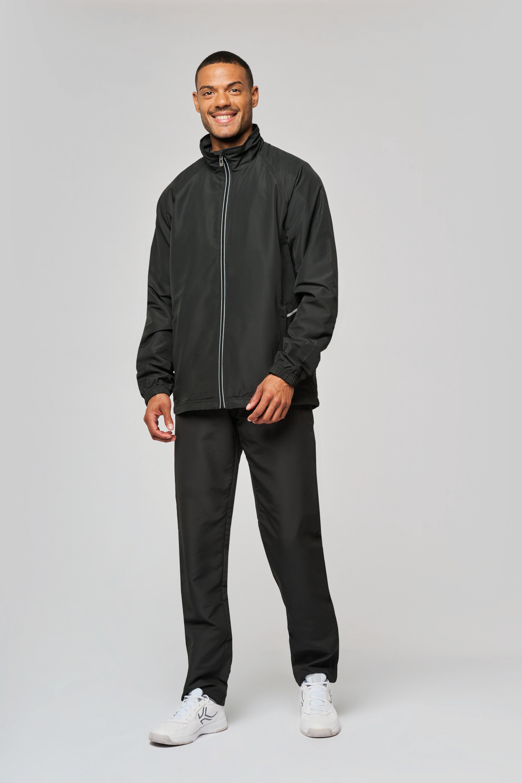 Esta chaqueta de chándal con cremallera no solo es elegante, sino también altamente funcional. Cuenta con un cierre con cremallera con ribete reflectante y cinta reflectante en los laterales, proporcionando mayor visibilidad en condiciones de poca luz. Los dos bolsillos delanteros con cremallera y un bolsillo interior ofrecen espacio suficiente para llevar tus pertenencias de manera segura. Además, los puños elásticos y el cordón de ajuste en el bajo de la prenda con topes aseguran un ajuste perfecto y cómodo. La cremallera interior facilita la personalización, haciendo de esta chaqueta una opción ideal para equipos y eventos.
