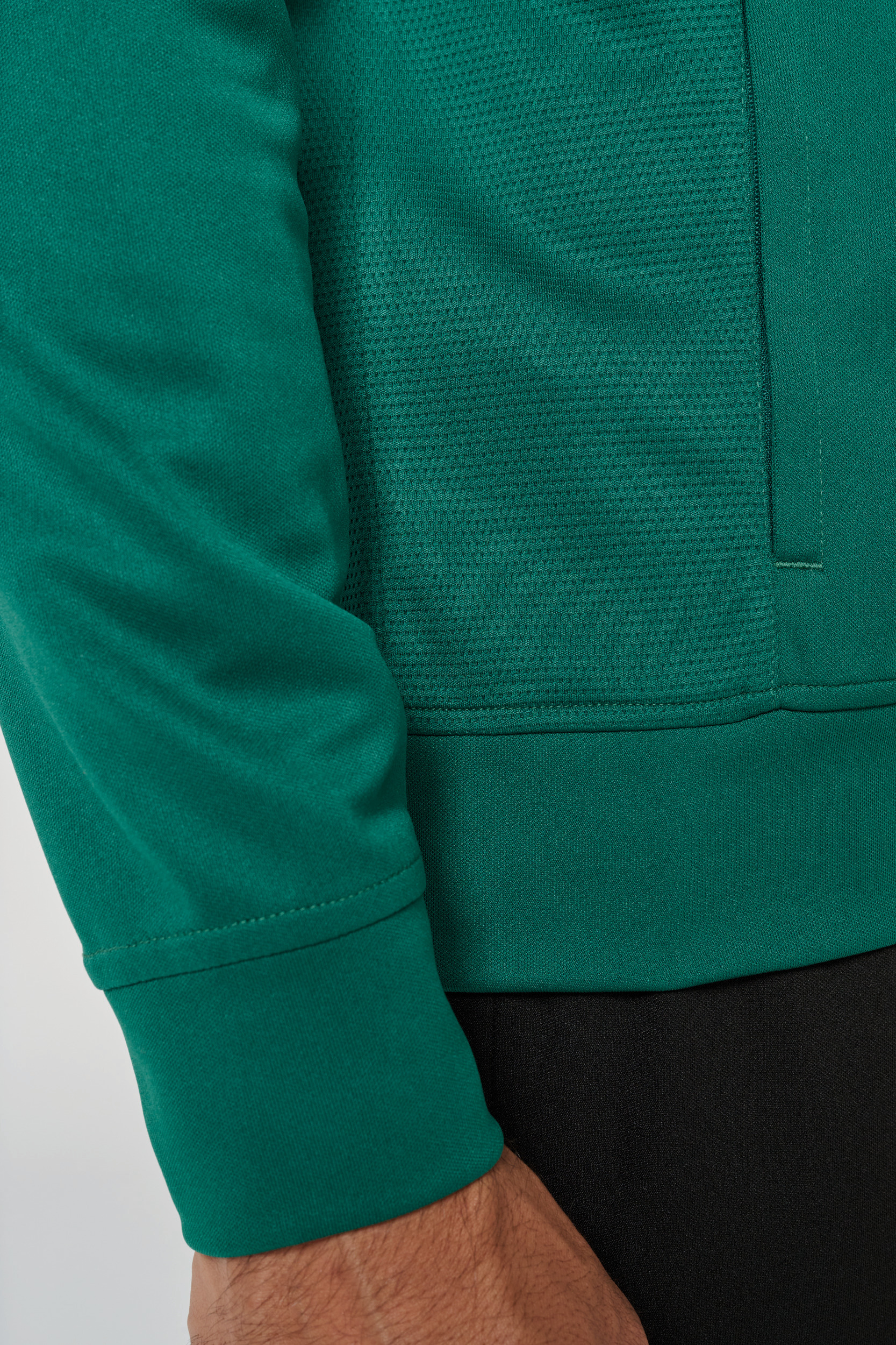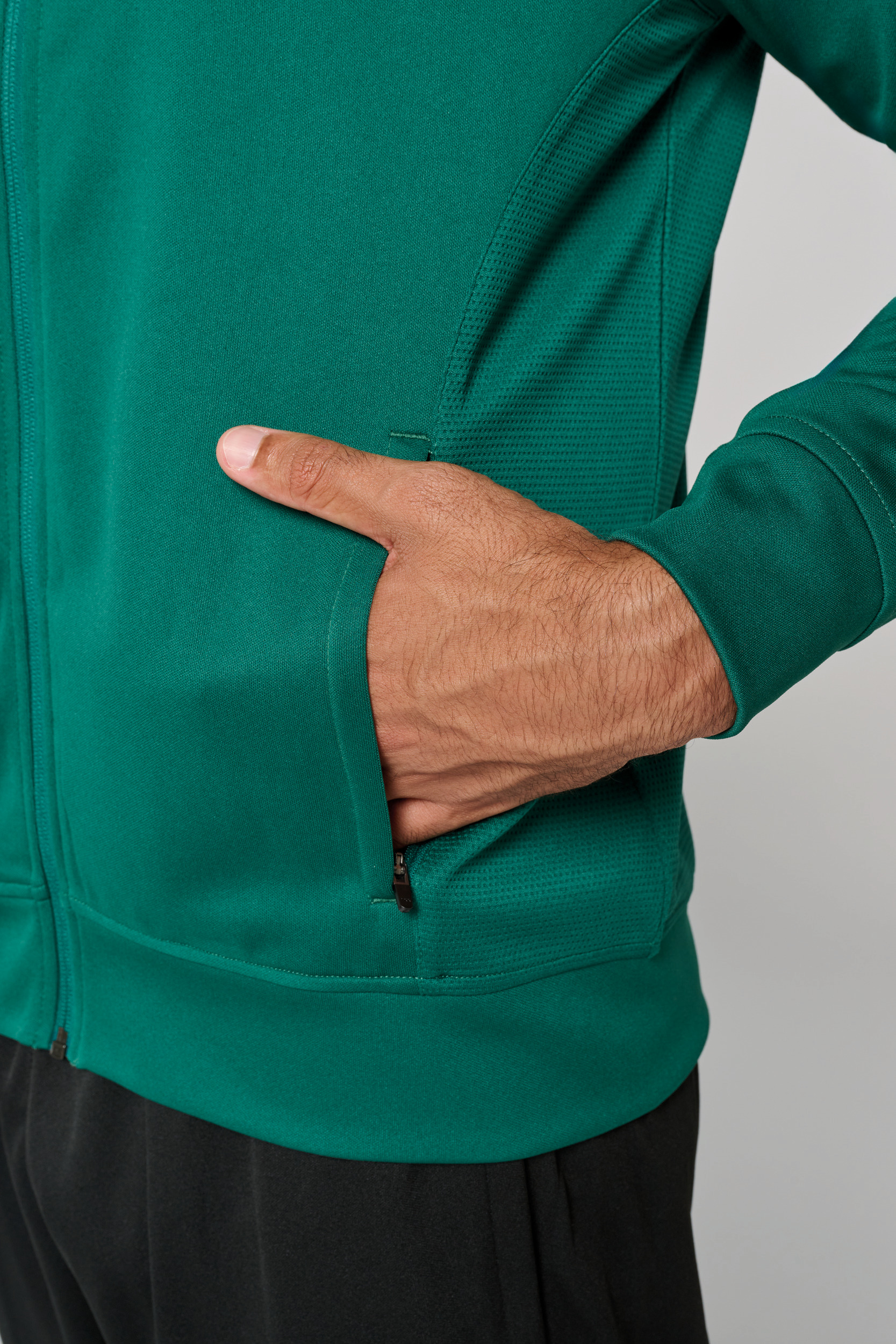 Disponible en una amplia gama de colores como negro, azul y rojo, y en tallas desde xs hasta 4xl, esta chaqueta se adapta a cualquier estilo y necesidad. Las inserciones de tejido texturizado en los laterales y en la espalda no solo mejoran la ventilación, sino que también aportan un diseño único. Además, el cubrecremallera en la parte superior del cuello asegura una mayor comodidad, mientras que la etiqueta extraíble facilita la personalización, haciendo de esta chaqueta una opción ideal para equipos deportivos, eventos corporativos o uso diario.