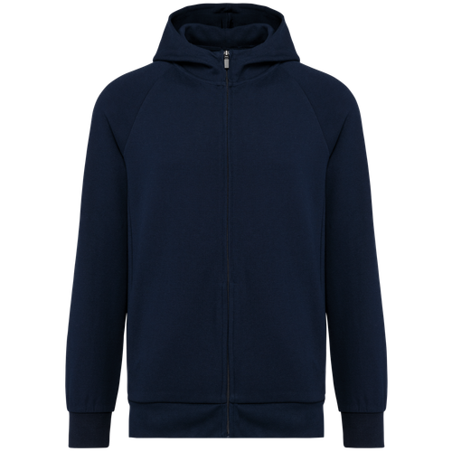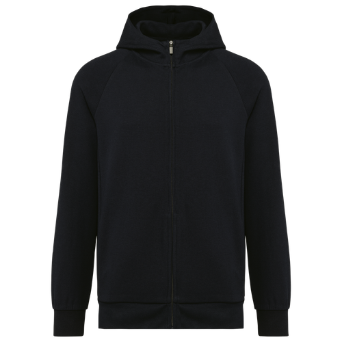Esta chaqueta con cremallera y capucha cuenta con una capucha de 2 paneles forrada en el mismo tejido, sin cordón para un look más limpio y moderno. La cremallera de nylon a tono con cierre metálico y la tira de limpieza interior garantizan un acabado impecable. Las mangas raglán y el canalé 1x1 en los puños y el dobladillo proporcionan un ajuste perfecto. Además, los 2 bolsillos en la costura de los paneles ofrecen un espacio práctico para llevar lo esencial. Sin etiquetas de marca, esta chaqueta es ideal para personalización.