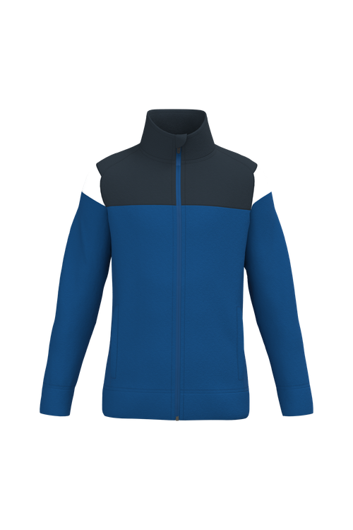 Esta chaqueta infantil con cremallera no solo es atractiva, sino también funcional. Cuenta con dos bolsillos delanteros con cremallera, ideales para guardar pequeños objetos de manera segura. La tira de tejido principal en el bajo de la manga y en la cintura proporciona un ajuste cómodo y seguro. Además, las inserciones de tejido texturizado en los laterales y en la espalda mejoran la ventilación y el confort. El cubrecremallera en la parte superior del cuello añade un extra de comodidad, evitando roces incómodos. Disponible en varios colores y tamaños, es perfecta para cualquier ocasión.