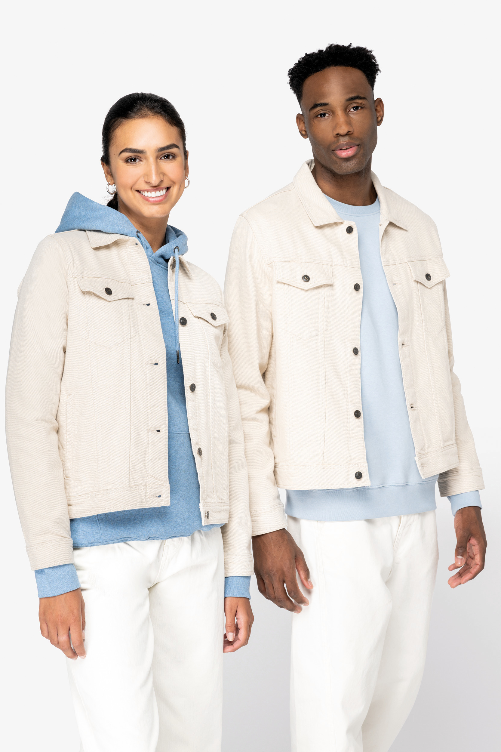 La chaqueta de mujer de cáñamo es la elección perfecta para quienes valoran la moda ecológica y el diseño atemporal. Su composición de 90% algodón orgánico y 10% cáñamo garantiza una prenda resistente, ligera y cómoda, ideal para el uso diario. El tejido natural sin teñir, en color raw natural, ofrece un aspecto visualmente texturizado con partículas finas que realzan su autenticidad. El corte recto y los detalles como los botones de metal reciclado y los bolsillos funcionales la convierten en una opción versátil para cualquier ocasión.