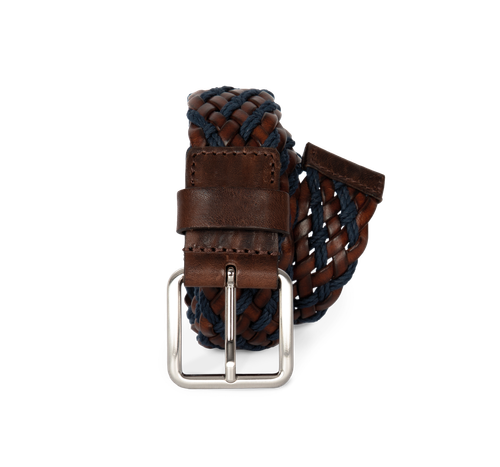El cinturón trenzado es la elección perfecta para quienes buscan un toque de elegancia y funcionalidad en su vestuario. Confeccionado con una mezcla de algodón y piel regenerada, este cinturón ofrece una durabilidad excepcional sin sacrificar el estilo. Disponible en dos combinaciones de colores contrastados, marrón y azul, se adapta fácilmente a cualquier atuendo, ya sea casual o formal.
